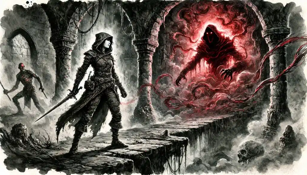 Blood Sacrifice | Demands a physical offering to proceed | Balancing moral choices with pragmatic outcomes | Reflects historical or religious tales interwoven into the dungeon |